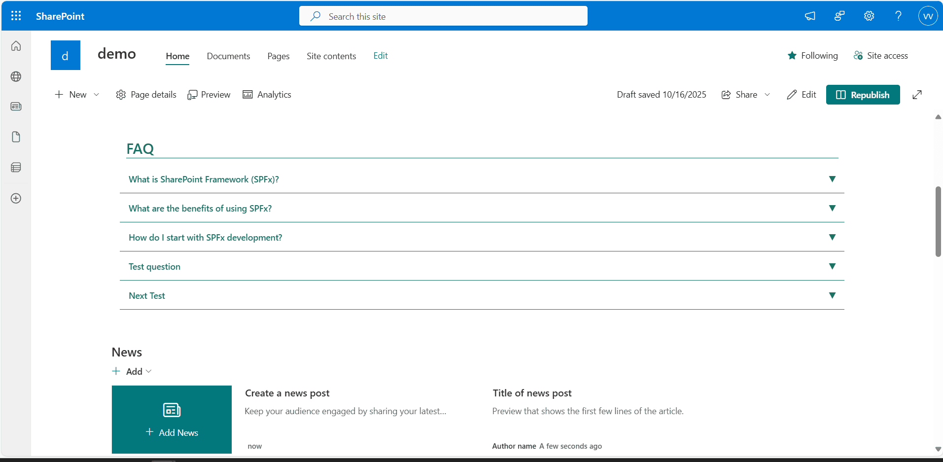 The SharePoint Accordion Webpart is a dynamic and user-friendly solution designed to organize and display FAQs, help content, and other expandable sections in a clean, collapsible format. Perfect for enhancing user experience, this webpart allows you to present information in a compact, interactive layout that’s easy to navigate.