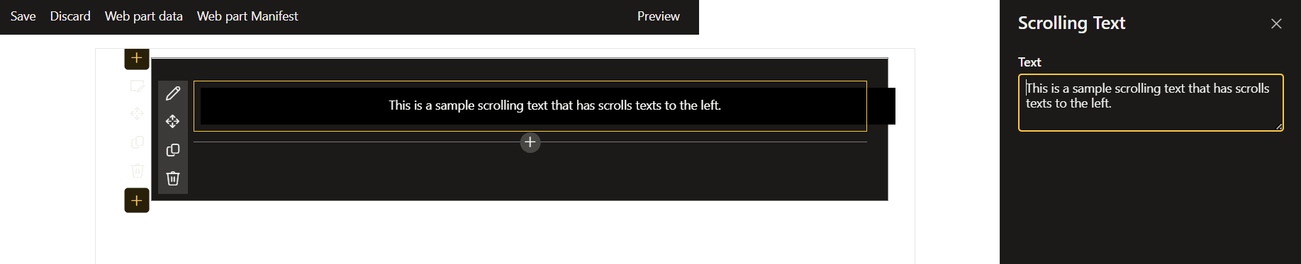 TheĀ SharePoint Notification Marquee Webpart is a custom solution for creating scrolling marquee text in SharePoint Online. You can easily update it from the frond end itself.